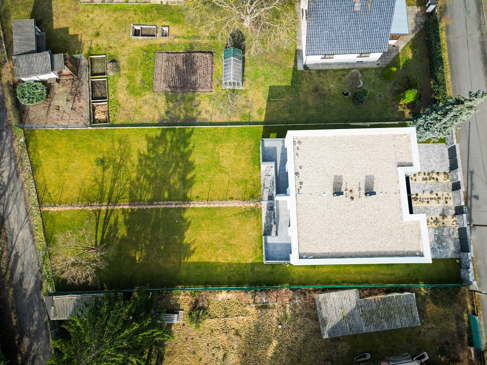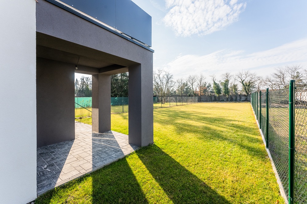 - Pozemek: Zarovnaný, kompletně zatravněný, automatický závlahový systém, výsadba živého plotu 150 cm až 180 cm výšky. Okrasné záhony.